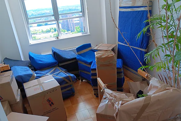 Moving boxes in living room.